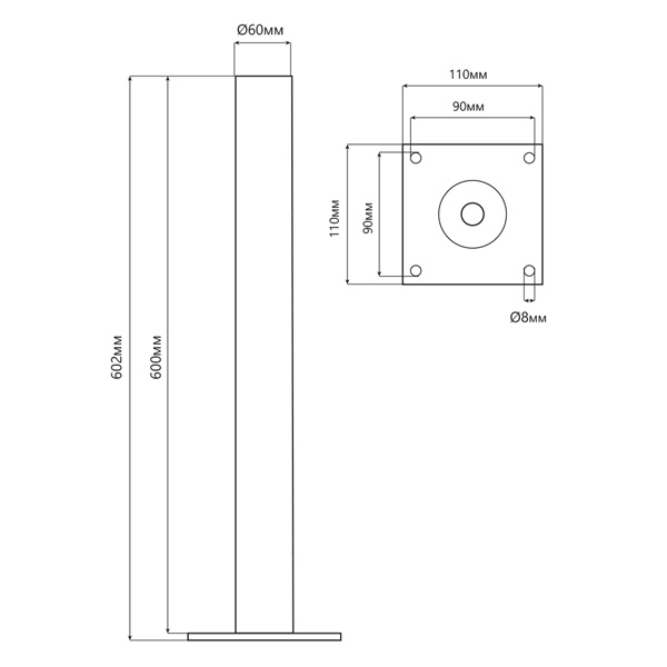 OМ 0,6 Опора металлическая для серии "Оптима", h=600мм d=60мм, черный