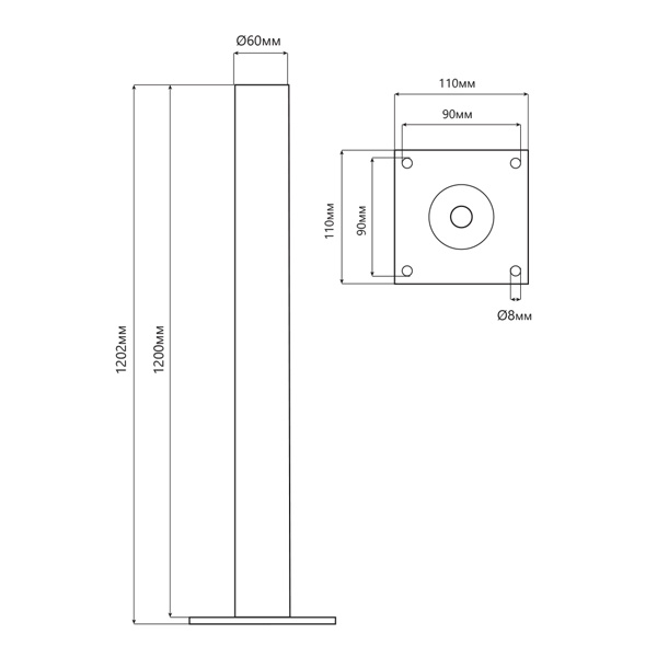 OМ 1,2 Опора металлическая для серии "Оптима", h=1200мм d=60мм, черный
