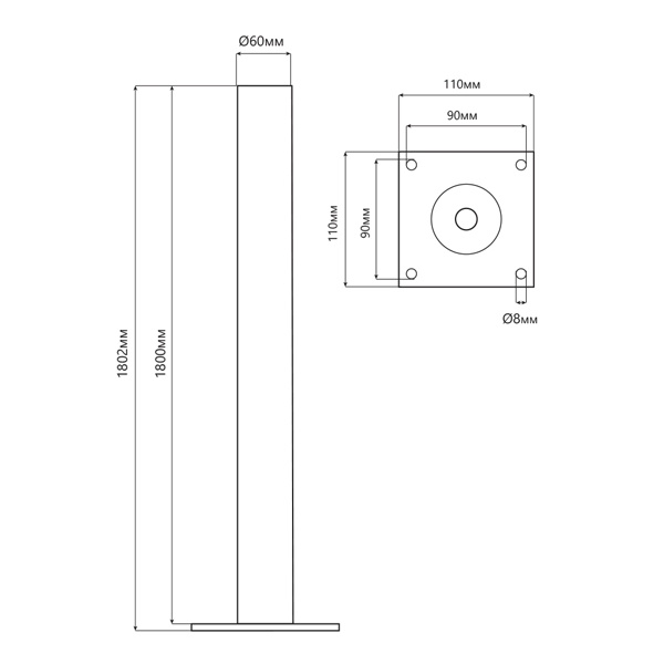 OМ 1,8 Опора металлическая для серии "Оптима", h=1800мм d=60мм, черный
