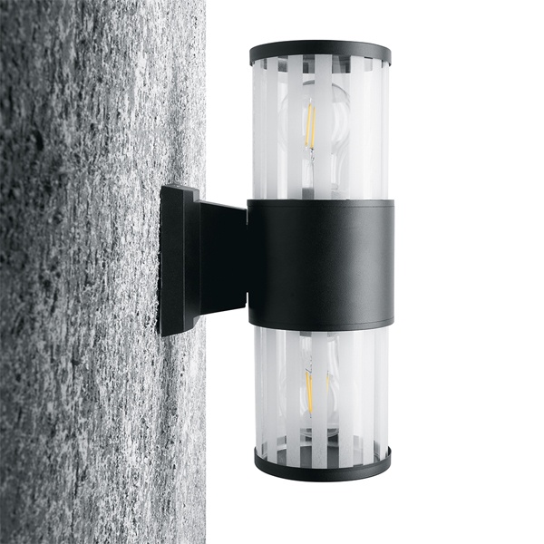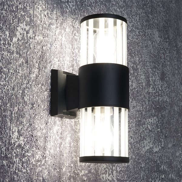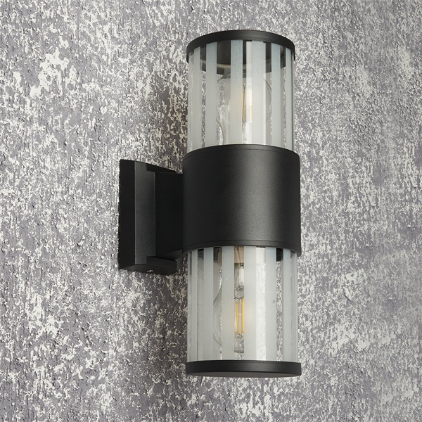 Светильник работает просто: внутри стоит патрон E27, на него подается 230 В от вашей линии освещения. Два направления свечения дают более равномерное восприятие света рядом со стеной: верх подсвечивает поверхность и «поднимает» фасад, низ помогает по земле — ступени, порог, дорожка. Это не про «залить двор», а про комфортную ориентировку и аккуратный внешний свет.