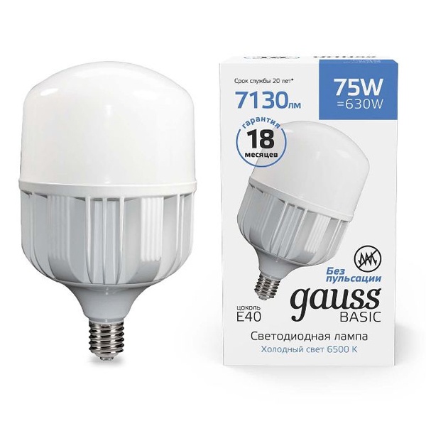 Светодиодная лампа промышленного освещения Гаусс, мощностью 75 Ватт, с цоколем E40, холодный дневной свет 11734382
