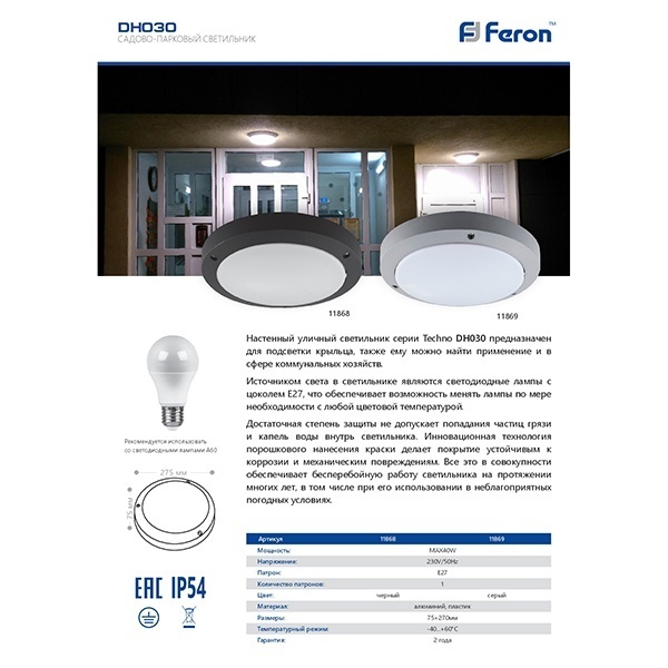 Настенный уличный светильник серии Techno DH030 используется для подсветки крыльца, также можно найти применение и в сфере коммунальных хозяйств.