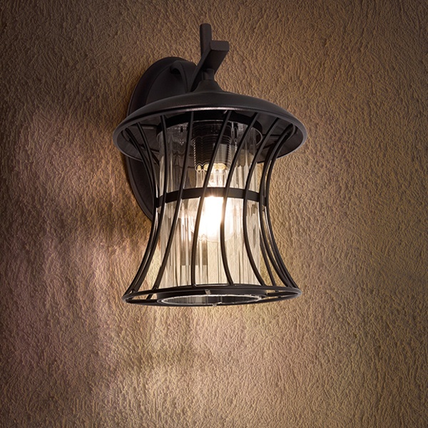 Уличный ламповый архитектурный настенный светильник с патроном Е27, из черного кованного железа, винтажного стиля. 11888