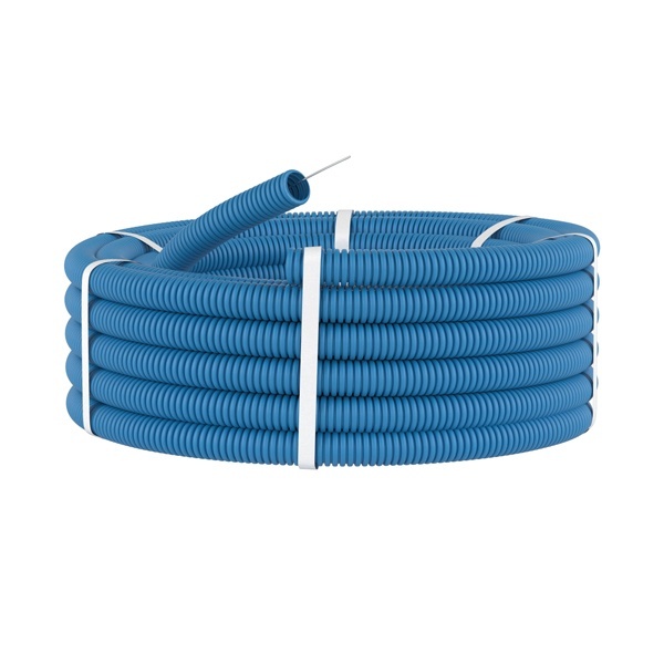Труба ПП гибкая гофр. д.25мм, лёгкая с протяжкой, 50м, цвет синий
