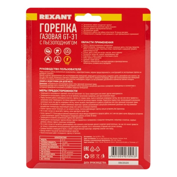 Газовая горелка-насадка создана компанией "REXANT", которая специализируется на недорогой и качественной продукции.