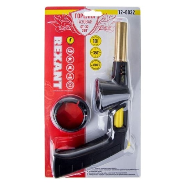 Газовая горелка-насадка создана компанией "REXANT", которая специализируется на недорогой и качественной продукции.Горелка-насадка имеет широкое сопло и является хорошим примером недорогой и надежной газовой горелки-насадки. Из-за своей цены очень хорошо подойдет обычным пользователям, которые первый раз приобретают горелку.Благодаря пьезоподжигателю пользователь легко может поджечь горелку нажатием одной кнопки.А из-за технологии 360 горелкой можно пользоваться в любом положении, нужно лишь включить горелку, подождать 15 секунд и открыть газ, после чего подождать еще 15 секунд, чтобы сопло нагрелось и можно спокойно пользоваться, не опасаясь, что огонь потухнет.Газовая горелка-насадка от компании "REXANT" без проблем справится с такими видами работ как: плавка пластика или стекла; снятие любых видов красочных изделий; разморозит дверной замок на даче; закоптит нужный вам продукт или карамелизирует сладкое; разморозит продукты; эффективно, а главное экологично подожжет дрова или угли.Сопло имеет диаметр 20 мм, что придаст в свою очередь огню широкую форму. Мощность 1,45 кВт/1,250 ккал. Температура выходного пламени максимум 1400 С, вполне достаточно, чтобы выполняло свои функции. Расход газа при нормальной работе 106 г/час. Тип газового баллона: ТВ-220 (цанговый). Баллон нужно заправлять пропаном. Горелка поджигается автоматически, поэтому вам не нужно носить с собой средство для поджога. Изготовлена из высококачественного материала: медь + сталь + сплав цинка + пластик. Имеет небольшой размер: 250х55х130 мм и при этом весит всего 212 г.