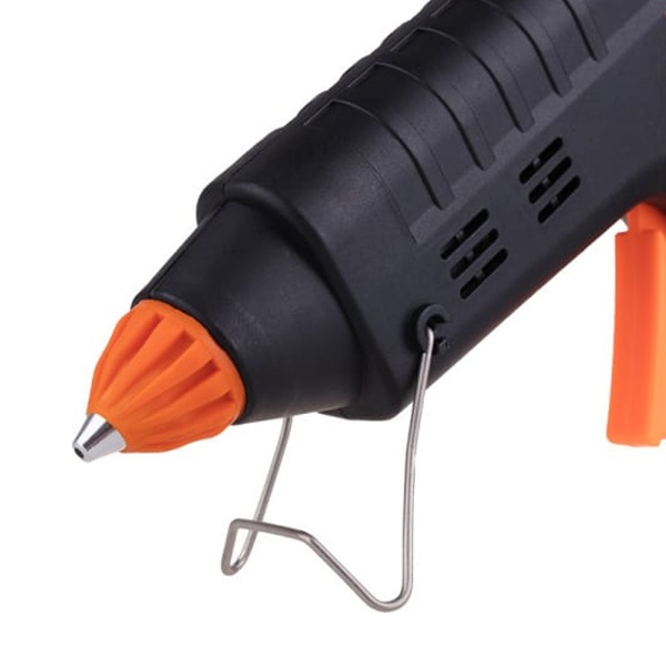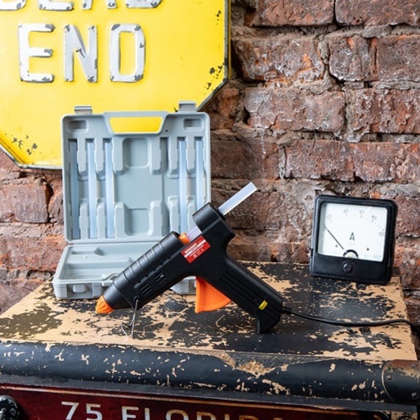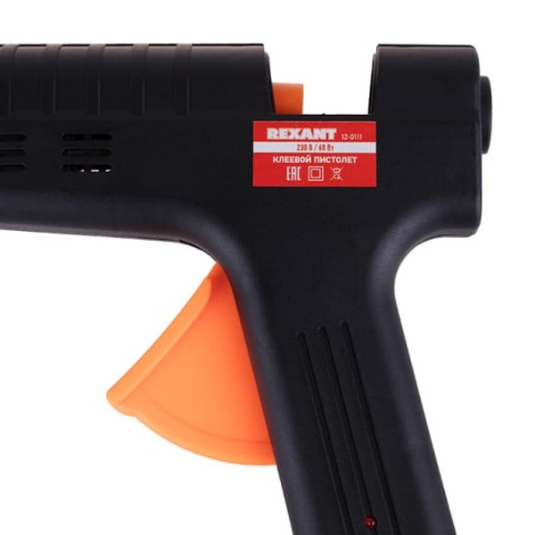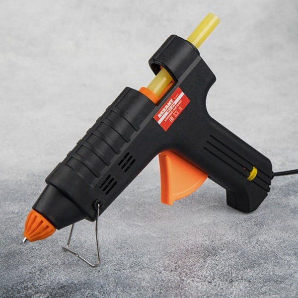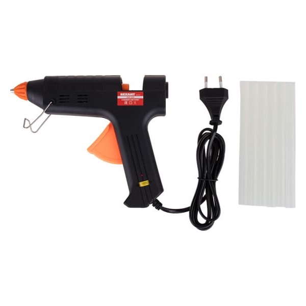 Принцип работы: клеевой стержень плавится в металлической камере с помощью нагревательного устройства и для точного дозирования при нажатии на курок подается из сопла на склеиваемую поверхность. Высокая мощность пистолета в 60 Вт позволяет очень быстро разогреть клеевой стержень и получать удовольствие от быстрой и бесперебойной работы. С его помощью вы сможете склеить: дерево, пластик, резину, кожу, стекло, металлы (их лучше перед работой разогревать феном), ткань, пенопласт, керамику, картон, бумагу, цветы или что-то другое.