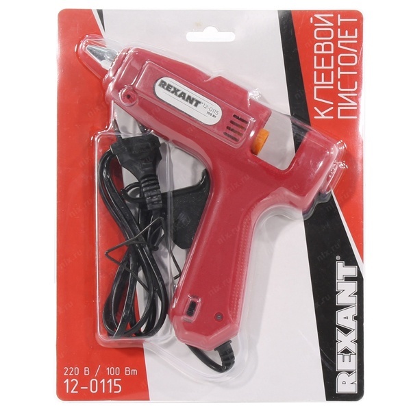 Пистолет клеевой 100 Вт (Профи) REXANT предназначен для прочной фиксации поверхностей с помощью расплавленной клеевой массы. В этой модели предусмотрен специальный клапан, который препятствует самопроизвольному вытеканию клея. Заправляется он специальным клеевым стержнем диаметром 11 мм. Корпус клеевого пистолета изготовлен из ударопрочной пластмассы и имеет скобу для надежной установки в нерабочем положении. Благодаря индикации на корпусе пистолета (LED лампочки красного цвета) удобно определить, включен ли пистолет.