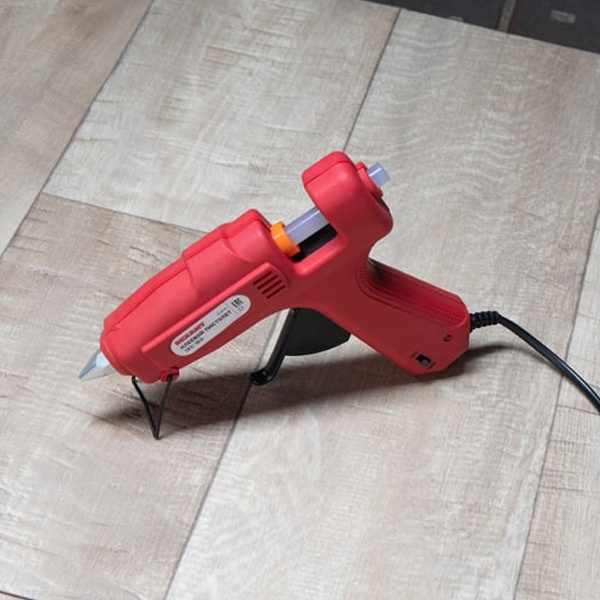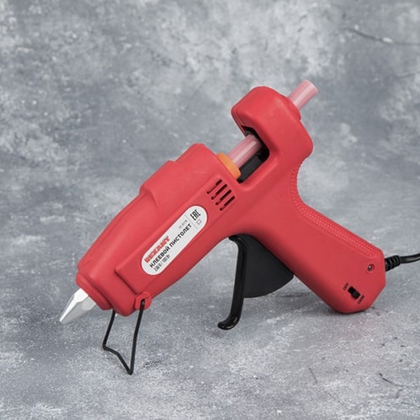 Принцип работы: клеевой стержень плавится в металлической камере с помощью нагревательного устройства и для точного дозирования при нажатии на курок подается из сопла на склеиваемую поверхность. Высокая мощность пистолета в 100 Вт позволяет очень быстро разогреть клеевой стержень и получать удовольствие от быстрой и бесперебойной работы. С его помощью вы сможете склеить: дерево, пластик, резину, кожу, стекло, металлы (их лучше перед работой разогревать феном), ткань, пенопласт, керамику, картон, бумагу, цветы или что-то другое.