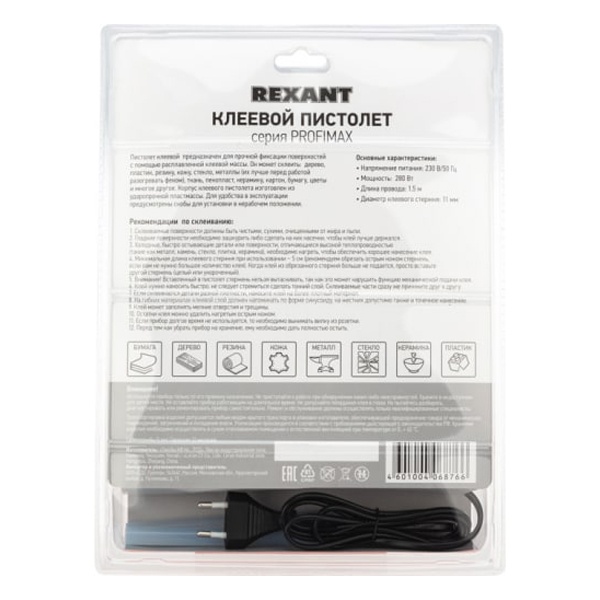 Пистолет клеевой предназначен для прочной фиксации поверхностей с помощью расплавленной клеевой массы. Заправляется он специальным клеевым стержнем диаметром 11 мм. Корпус клеевого пистолета изготовлен из ударопрочной пластмассы.