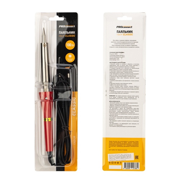 Паяльник PROconnect, долговечное жало, 100 Вт, 230 В, серия Classic