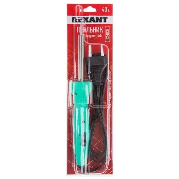Паяльник REXANT с нагревателем, долговечное жало, 220 В/40 Вт, LED подсветка
