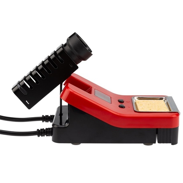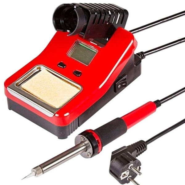 Паяльная станция (160...520 °С) цифровой дисплей 230 V/48 Вт REXANT предназначена для ручного монтажа радиоэлементов. Её можно использовать как в домашних условиях, так и в профессиональных лабораториях.Специально разработанный современный корпус имеет компактный и стильный дизайн.Для профессионального контроля температуры нагрева жала паяльника на корпусе расположены кнопки регулировки и цифровой дисплей с синей подсветкой. Температурный диапазон нагрева жала варьируется в пределах 160...520°С.Станция комплектуется паяльником оптимальной мощности 40 Вт, металлическим держателем паяльника, губкой для очистки жала в ложементе.