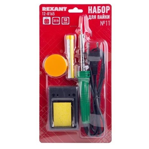 Набор для пайки № 11 (паяльник 30 Вт, подставка, губка для удаления припоя, канифоль, припой) REXANT позволит эффективно, быстро и самостоятельно отремонтировать электротехнику или произвести монтаж оборудования.
