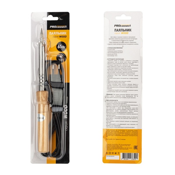 Паяльник ПД PROconnect, 220 В/65 Вт, деревянная ручка, блистер