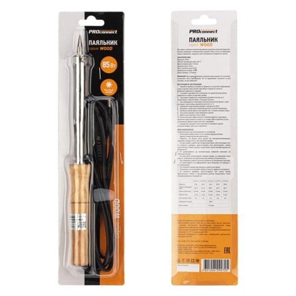 Паяльник ПД PROconnect, 220 В, 85 Вт, деревянная ручка, блистер