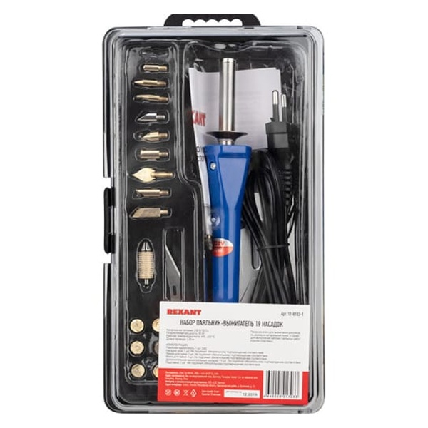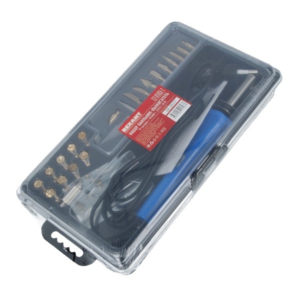 Выжигатель REXANT (набор паяльник-выжигатель), 21 насадка, подставка, 230 В/30 Вт