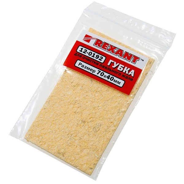 Предназначена для удаления окислов с поверхности жала и избытков припоя (продлевает срок службы паяльника). Производится из чистой целлюлозы и поставляется в спрессованном виде. Перед использованием губку нужно смочить водой, отжав излишки.