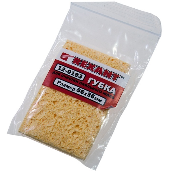 Предназначена для удаления окислов с поверхности жала и избытков припоя (продлевает срок службы паяльника). Производится из чистой целлюлозы и поставляется в спрессованном виде. Перед использованием губку нужно смочить водой, отжав излишки.