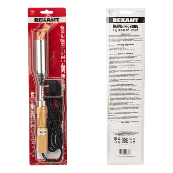 Паяльник ПД Рексант, мощностью 200 Ватт, деревянная ручка 12-0211