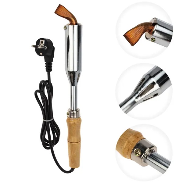 Электрический паяльник ПД 300 Вт с деревянной ручкой и клинообразным жалом непрерывного нагрева предназначен для монтажной пайки и лужения оловянно-свинцовистыми припоями элементов радиоэлектронной аппаратуры и тонкостенных металлических изделий в производственных и бытовых условиях.Перед началом эксплуатации электрического паяльника паяльное жало следует подвергнуть лужению.