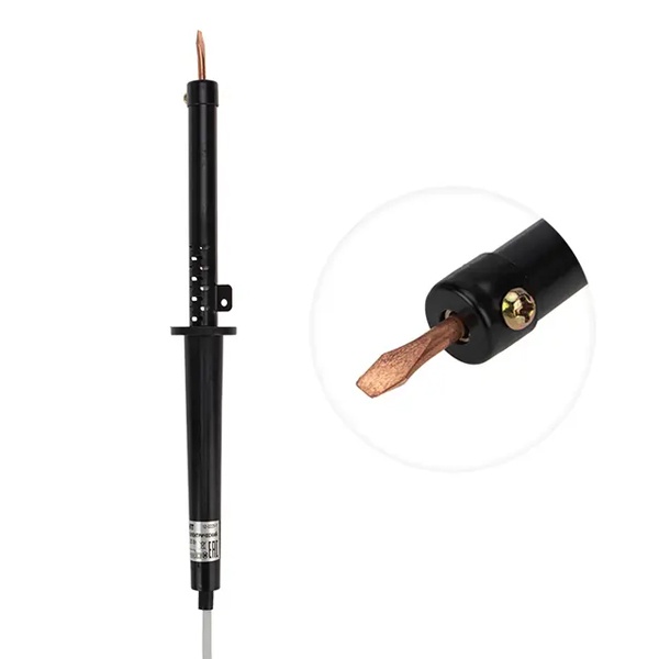 Электрический паяльник мощностью 25 Ватт, со спиральным нагревателем, с пластиковой ручкой и клинообразным жалом, Рексант 12-0225-1