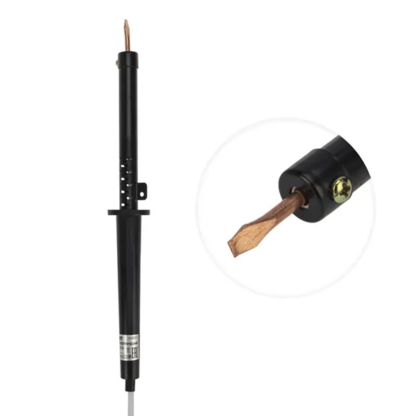 Электрический паяльник мощностью 40 Ватт, со спиральным нагревателем, с пластиковой ручкой и клинообразным жалом, Рексант 12-0240-1