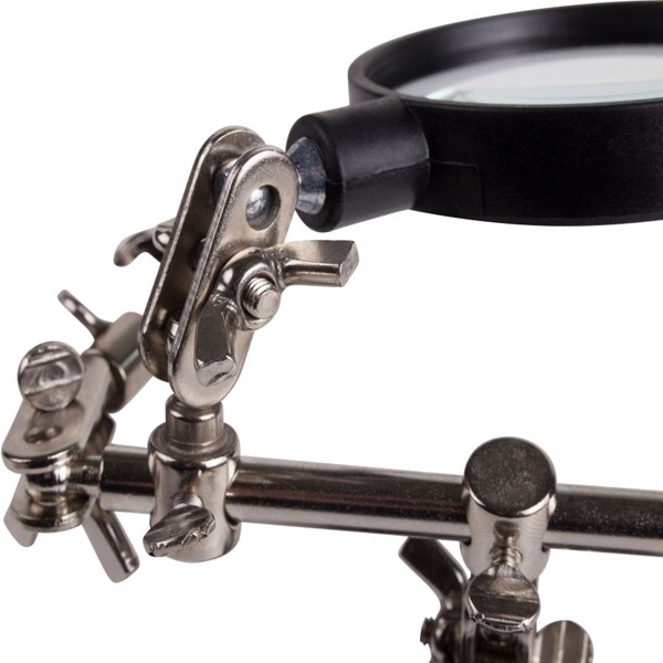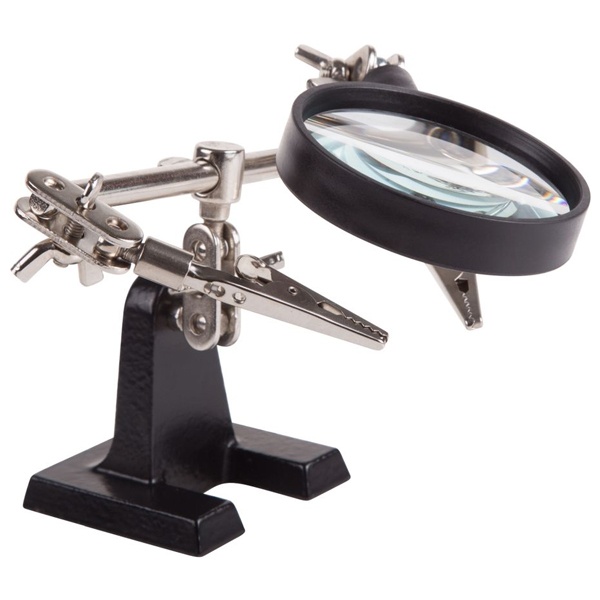 Держатель «Третья рука» REXANT, 2 зажима, чугун, лупа (2.5х) 60 мм