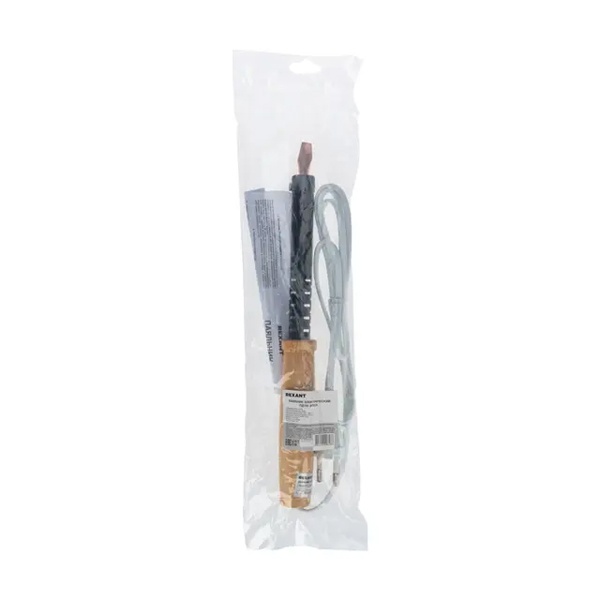 Электрический паяльник мощностью 100 Ватт, со спиральным нагревателем, с деревянной ручкой и клинообразным жалом, Рексант 12-0291