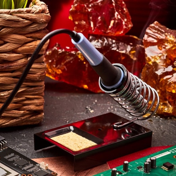 Подставка под паяльник торговой марки Rexant предназначена для безопасного хранения паяльника при нагревании, в промежутках между его использованием и охлаждением. Основной рабочий инструмент радиолюбителя или монтажника аппаратуры – это электрический паяльник, которым невозможно пользоваться в отсутствии подходящей по размеру и надёжной в эксплуатации подставки. Эта подставка невероятно проста и удобна в использовании. Она выполнена из витой хромированной конусообразной пружины и металлической платформы с ложементом под губку для очистки жала паяльника от остатков припоя. Губка для очистки жала паяльника поставляется в комплекте. Паяльник легко и удобно помещается в направляющую. Вес изделия – 0,243 кг. Страна производства – Китай.