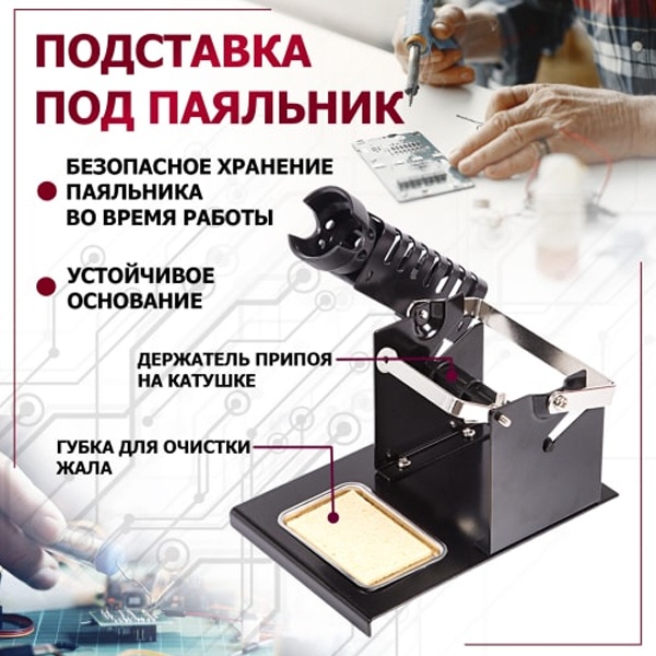 Фиксатор под паяльник Рексант с держателем припоя на катушке 12-0316