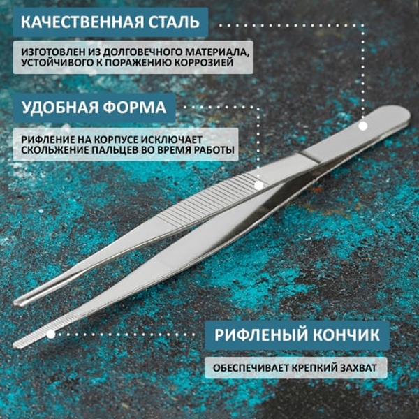 Пинцет прямой, рифленый 160 мм REXANT предназначен для различных работ и операций с мелкими предметами в труднодоступных местах. Пинцеты широко применяются при паяльных работах, в часовых и радио мастерских, филателии, медицине, биологии, химии, косметической и других сферах, где невозможно, неудобно, либо опасно брать незащищенными руками предметы.