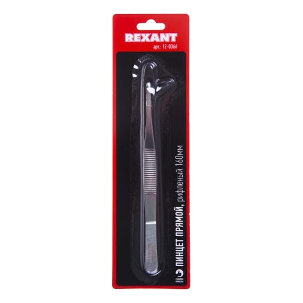 Пинцет прямой, рифленый 160 мм (блистер) REXANT