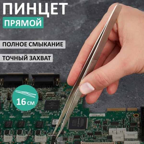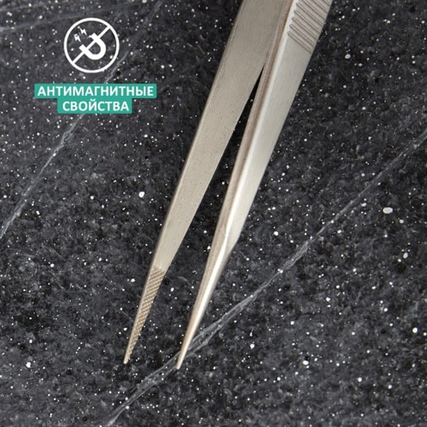 Пинцет прямой 160 мм REXANT предназначен для манипуляции маленькими предметами, которые невозможно, неудобно, либо нежелательно или опасно брать незащищенными руками.