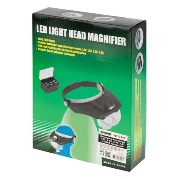 Бинокуляр монтажный 1.2х 1.8х 2.5х 3.5х с 2хLED подсветкой Rexant 12-0402