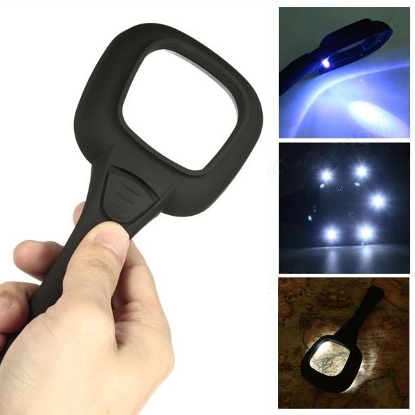 Лупа ручная квадратная с четырехкратным увеличением и светодиодной подсветкой 12-0406