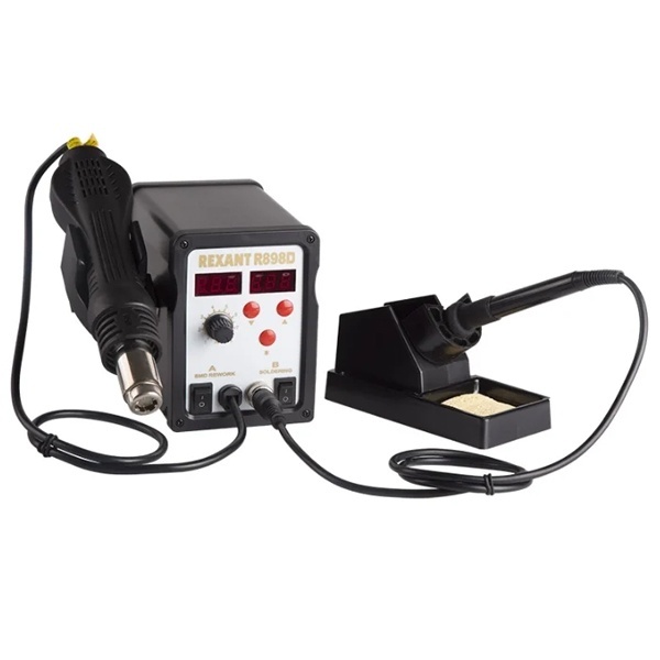 Станция паяльная (паяльник + термофен) с цифровым дисплеем 150-500град.C (R898D) Rexant 12-0721
