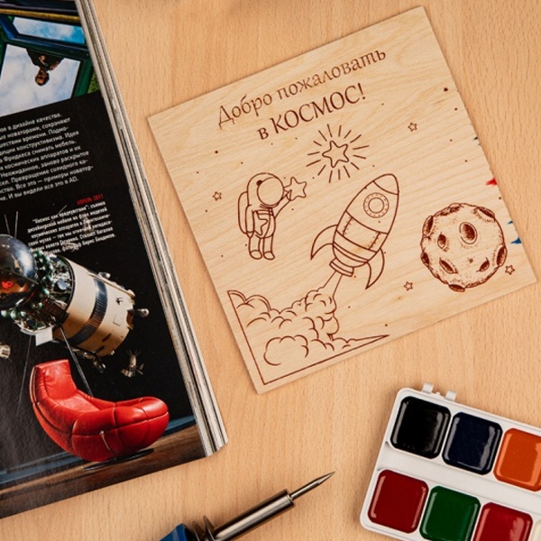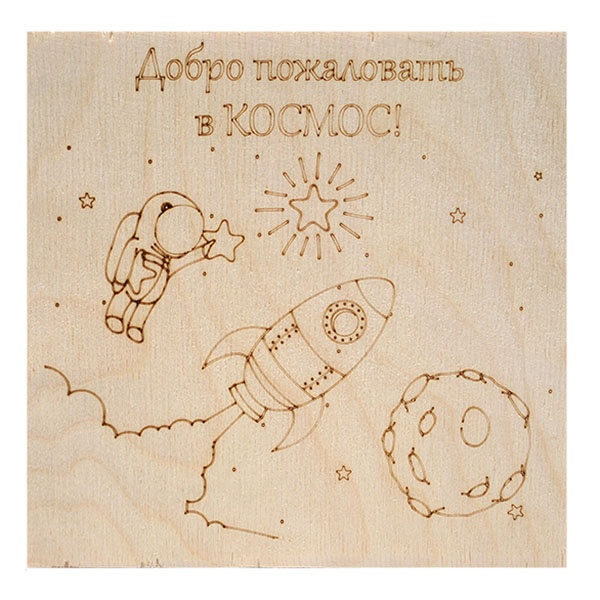 Доска для выжигания с рисунком Космос, размером 15х15 см, толщиной 4 мм 12-0910.