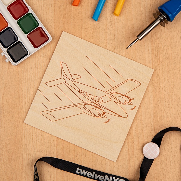 Доска для выжигания с рисунком Самолет, размером 15х15 см, толщиной 4 мм 12-0915.