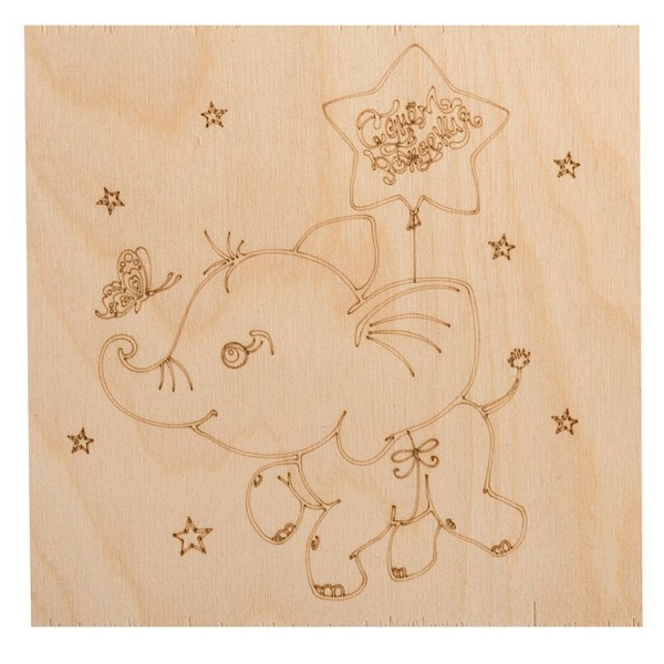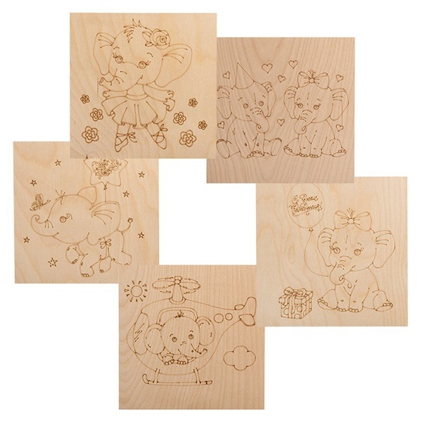 Набор из 5 досок для выжигания с рисунками «Слоненок», размером 15х15 см, толщиной 4 мм 12-0932