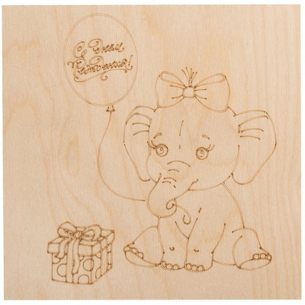 - Состав набора «Слоненок»: 5 досок для выжигания — сюжеты со слоненком (слоненок на лужайке, слонята на празднике, слоненок на шаре, слоненок с подарком, слоненок летчик).