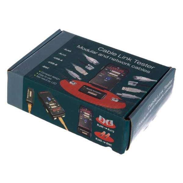 Универсальный тестер кабеля RJ-45 + USB (HY-251454CT) REXANT применяется для тестирования витой пары и USB кабеля. Тестер состоит из двух функциональных блоков активной и пассивной части (заглушки), которые подключаются к концам кабельной линии через разъемы RJ-45 или USB. Имеет встроенную индикацию зарядки батареи питания. Светодиодная индикация есть на основном блоке прибора и на удаленном модуле, на которую выводится результат тестирования. Корпус изготовлен из ударопрочной пластмассы.