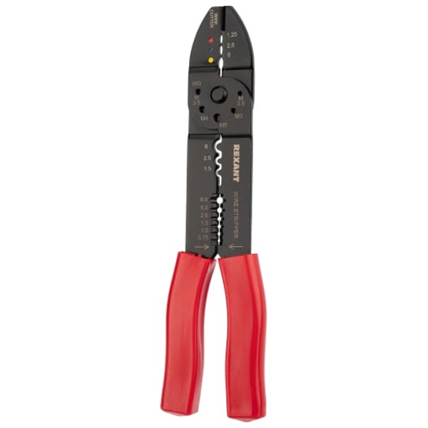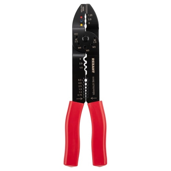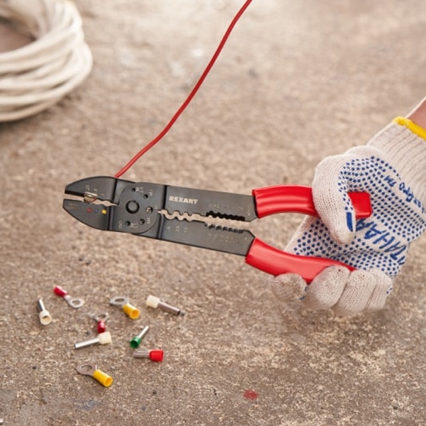 Кримпер Rexant для обжима наконечников и зачистки проводов (HT-204) — универсальный ручной инструмент для электромонтажных работ, предназначенный для обжима наконечников на проводниках и аккуратной зачистки изоляции. Подходит для повседневного использования при сборке щитов, подключении оборудования, монтаже розеточных и осветительных линий, а также при обслуживании электропроводки.