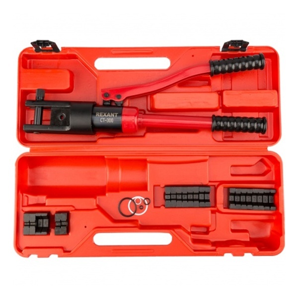 Гидравлический обжимной инструмент REXANT CT-300 позволяет создавать надежное соединение между кабельной жилой и кабельным наконечником или гильзой. В комплектацию входят сменные матрицы для опрессовки жил и наконечников разного сечения.