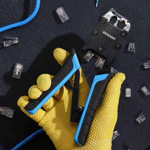 Кримпер REXANT HT-500R - универсальный инструмент для обжима разъемов RJ-45 (8P8C), RJ-12 (6P6C) и RJ-11 (6P4C и 6P2C), а также для снятия изоляции и обрезки проводов.