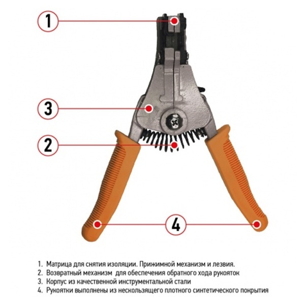 - Специальная конструкция инструмента позволяет зачищать изоляцию без повреждения жилы провода.
