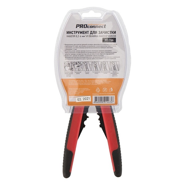 Инструмент REXANT HT-766 (HY-371) предназначен для зачистки внешней изоляции одножильного и многожильного кабеля в диапазоне 0.2-6.0 мм2, для обжима изолированных и неизолированных наконечников в диапазоне 1.5-6.0 мм2 и обжима контактов высоковольтных проводов зажигания в диапазоне 7.0-8.0 мм2.