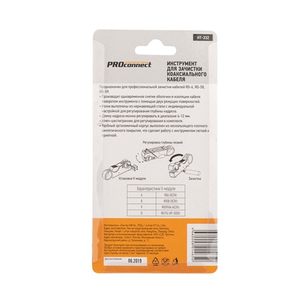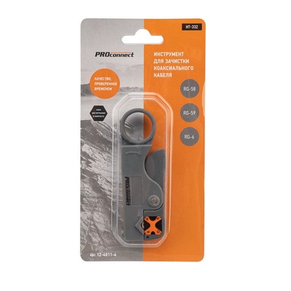 Инструмент PROconnect HT-332 предназначен для профессиональной зачистки кабелей RG-58, RG-59 и RG-6.