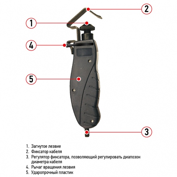 - Инструмент позволяет с легкостью снять оболочку в любом месте подавляющего большинства распространенных кабелей с диаметром от 4.5 до 25 мм.
