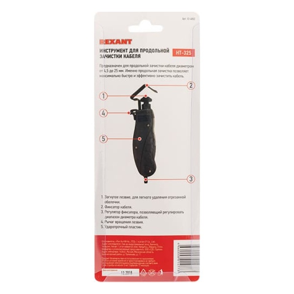 Инструмент REXANT HT-325 предназначен для продольной зачистки кабеля диаметром в диапазоне от 4.5-25.0 мм.